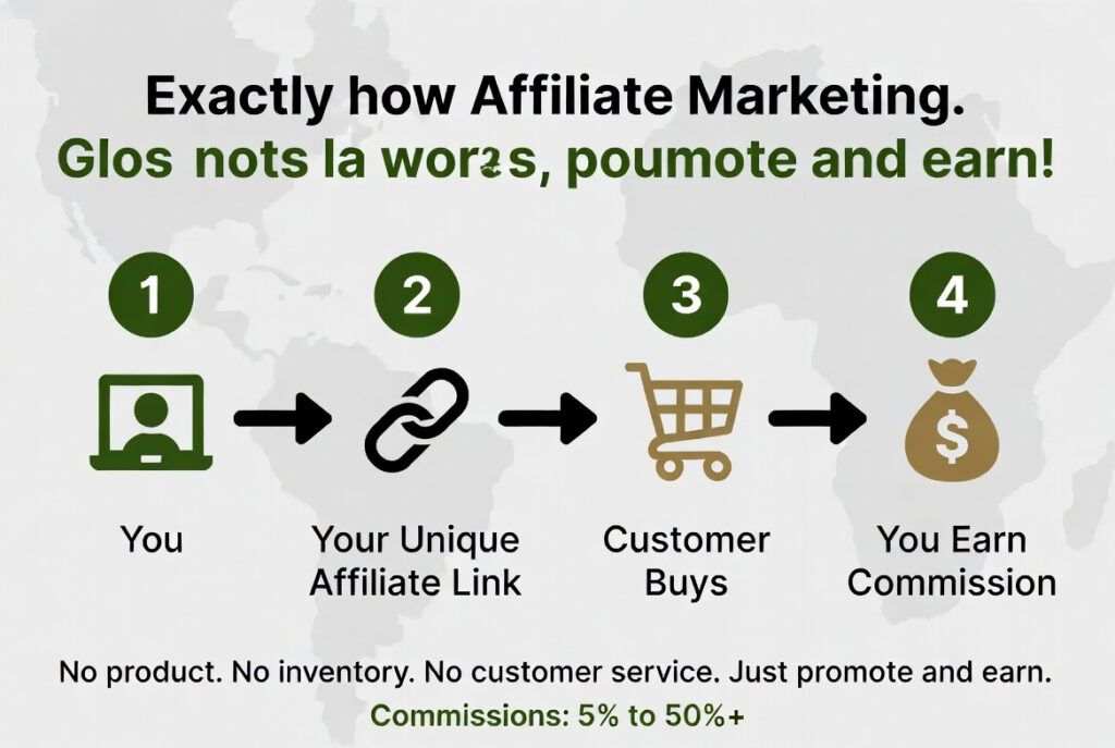 Affiliate marketing is one of the most accessible ways to earn money online in Africa. You promote other companies’ products or services, and when someone buys through your unique link, you earn a commission. No product creation, no customer service, no inventory โ just promote and earn.