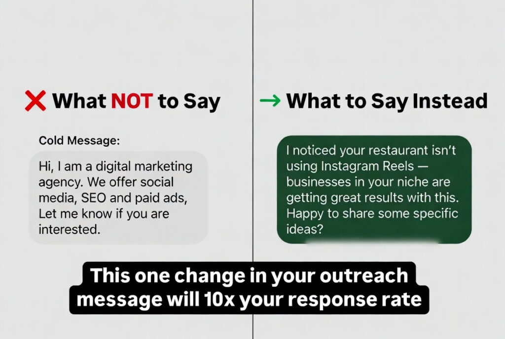- Example: “I noticed you’re not using Instagram Reels โ businesses in your niche are getting great results. Happy to share some specific ideas if useful?”