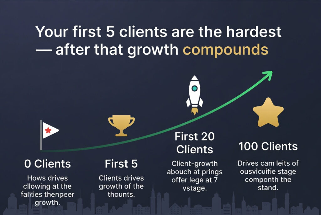 Getting your first clients is the hardest part of building a digital marketing agency. Once you have 10-20 satisfied clients, word of mouth takes over and growth becomes exponential. But getting those first clients requires a specific, proactive strategy.