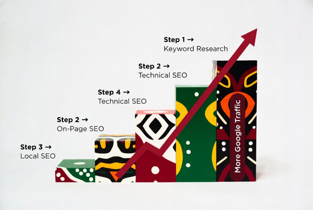 SEO โ Search Engine Optimization โ is the process of making your website appear higher in Google search results. When someone in Nairobi, Lagos or Cairo searches for your type of business, SEO determines whether they find you or your competitor.