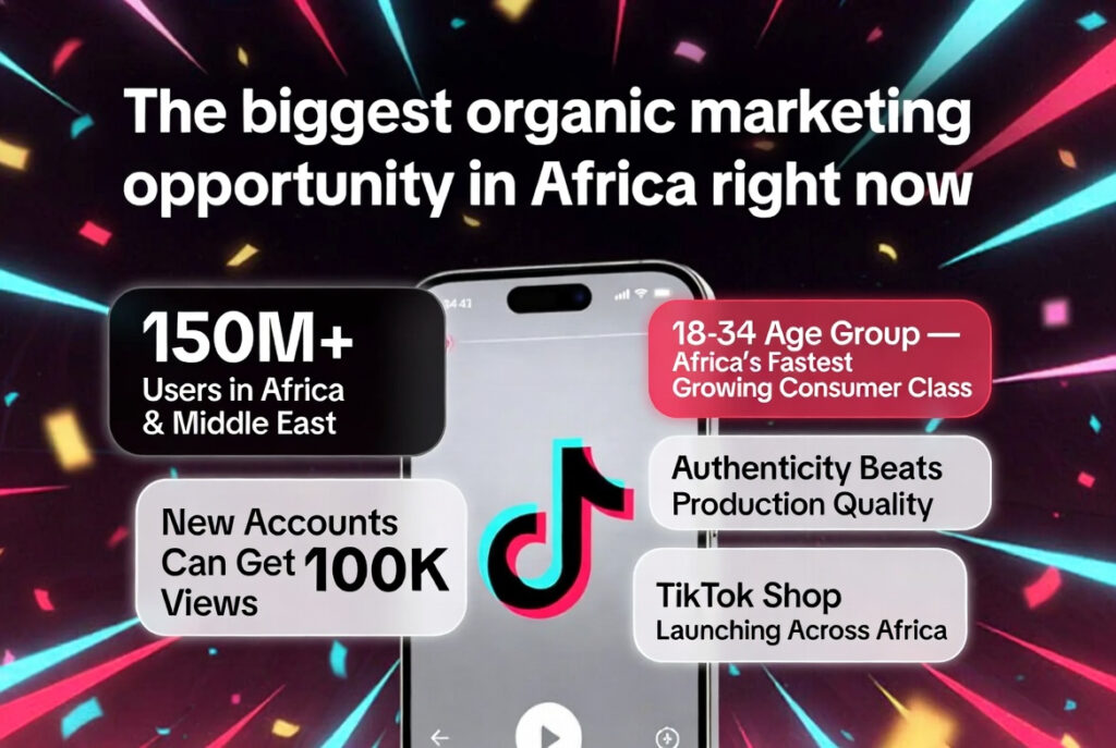 TikTok represents the biggest organic marketing opportunity available for African businesses right now. The platform is growing rapidly, competition from businesses is still low and the algorithm actively helps new accounts reach large audiences. Start posting today.
